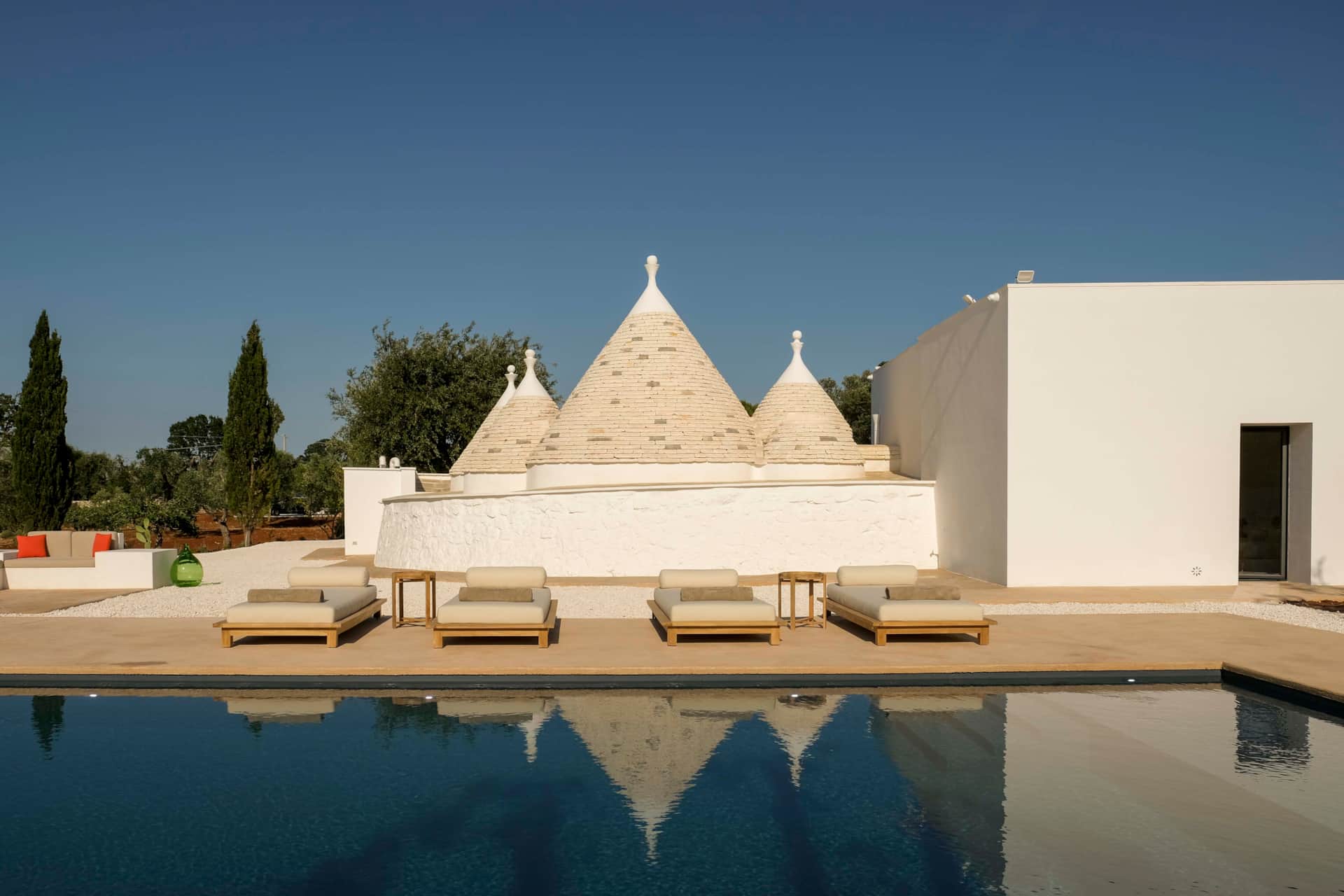 Trulli Petramyrta non è solo una villa, ma un’esperienza immersiva: materiali naturali, tonalità calde e dettagli artigianali trasportano gli ospiti nella cultura e nella bellezza della Puglia, mentre comfort moderni e curati permettono di vivere un soggiorno indimenticabile. Che tu desideri relax, scoperta culinaria o immersione culturale, questa dimora rappresenta la cornice ideale per viaggiatori che cercano privacy, raffinatezza ed esperienze uniche.
